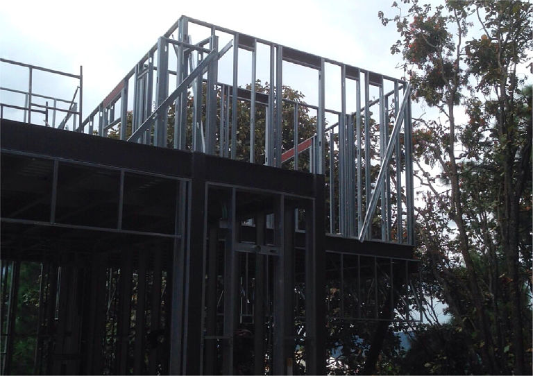 Marcos OMF sismo-resistentes de acero como sistema principal lateral, con un sistema de vigas de acero con losacero + concreto para entrepisos y canales doblado en frío con OSB + Aislantes para azotea. Cimentación por medio de zapatas aisladas.