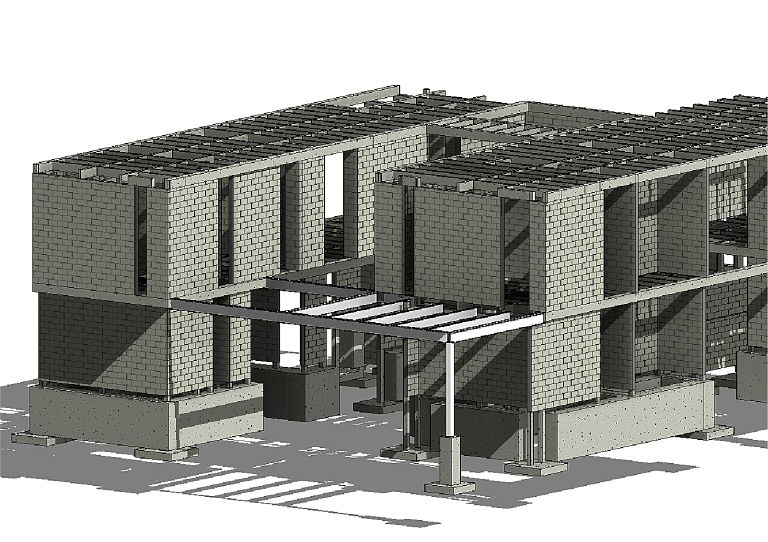 Muros de mampostería confinada y columnas de concreto como sistema sismo-resistente. Sistema de entrepiso por medio de losas aligeradas con poliestireno en una dirección. Cimentación por medio de zapatas aisladas.